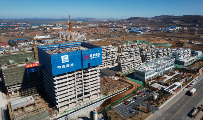 春暖花开,春光正好。中建筑港融发(烟台)蔚蓝新城西区建设项目现场一片繁忙景象,运输车辆有序进出,塔吊紧张作业,地下室、二次结构作业面工人有序忙碌着,机器运转声、工具碰撞声、工人吆喝声“交织”在一起,仿佛一首春天里的工地交响曲。在经历了短暂的停工停产后,按照属地政府相关政策要求,项目第一时间稳步推进复工复产各项工作。