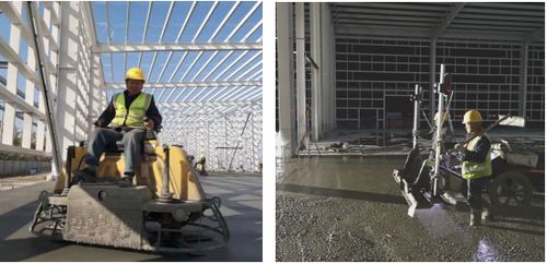车间地面采用地面激光整平机应用技术,使地面平整度及标高准确度显著提高,密实度及强度得到了进一步改善,地面提浆、抹平采用座驾式磨光机,减轻了工人劳动强度,提高了工作效率,并在一定程度上避免了,传统地面磨光机可能发生的机械伤害。