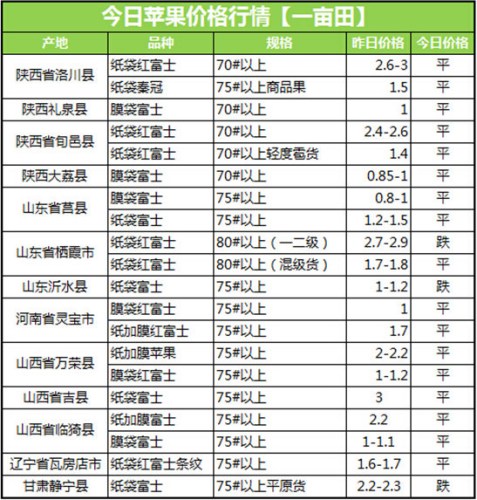樊老板还会把苹果价格行情在朋友圈分享,帮助当地果农及时掌握市场信息。一亩田APP不久前推出的中国10大苹果主产区的每日行情播报服务,就很受他和朋友的欢迎。据一亩田当日行情显示,陕西洛川苹果价格稳定在2.6-3元之间,大荔县富士苹果价格低于1元。山东栖霞优质红富士苹果售价接近3元,其他地区苹果在1-3元不等。“每天多研究研究行情变化,该出手时就出手,电商信息非常有价值”。