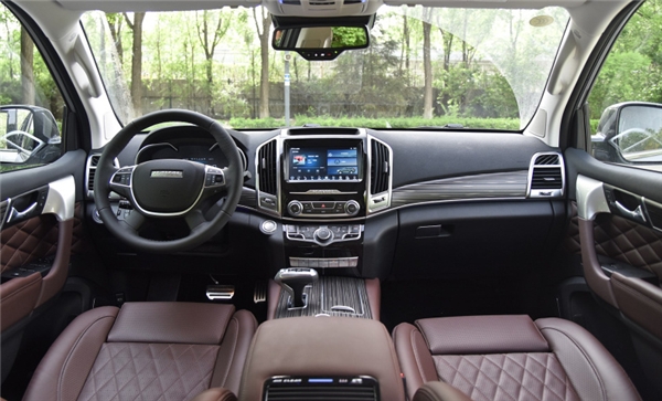 哈弗H9的内饰设计则充满新潮与奢华,莫里斯棕配色+木纹装饰的结合给人沉稳大气的感觉;座椅全部采用牛皮材质,触感柔软舒适。再看中控区域的设计,9英寸的大屏分辨率非常高、反应迅速,并且支持智能语音交互功能,方便、快捷,科技感十足。相信开着哈弗H9的中年车主有面子,年轻车主也能充分体会到潮流与舒适。