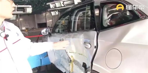 因此,这里的断电,一定是在测试前车辆就已经处于未通电状态。而在碰撞完成之后,另一侧车门未能打开,也说明了此时车辆是处于锁车的状态,系统完全不通电。